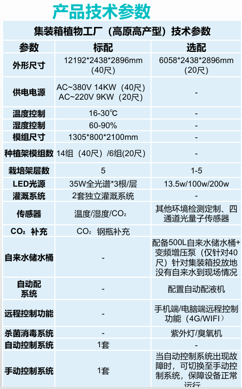 高原型集装箱植物工厂是利用海运集装箱进行改造和组装,集气候控制、灌溉、光照等多项技术于一体的全封闭式植物工厂。高原型集装箱植物工厂在植物生长的过程中,可以对温度、湿度、二氧化碳浓度、光照强度、营养液等参数进行精细控制,为植物提供最适宜的生长环境。