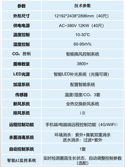 菌菇集装箱通常是由标准冷藏集装箱经过特殊改造而成,内部由种植舱和设备舱构成,配备了先进的种植设备和环境控制系统。通过智能系统调控能够模拟菌菇生长所需的最佳环境条件,如温度、湿度、光照和空气流通等。通过集装箱的改造和设备的安装,菌菇集装箱成为了一个完全可控的、高效的生产单元。