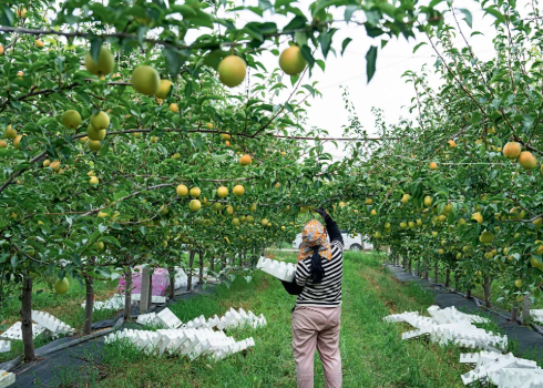 中国梨的栽培已有逾千年历史,如今从品种选配到栽培与分级,正向更精细的方向演进。在农民李国斌的园区,时令安排得井井有条:“丹霞红梨已经到了这个成熟度了,它算是一个中早熟的品种;其他的梨种,我会分成中秋、国庆、元旦三个节日推出。” 他把季节做成计划,把熟期做成市场。