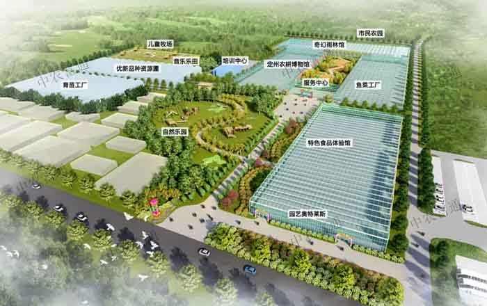 定州农业嘉年华位于东亭镇东庞村,由北京中农富通园艺有限公司承建及运营。项目以农业为基础、科技为支撑、文化为纽带、旅游为特色,注入“科技农业、创意农业、景观农业、体验农业、生态农业”等理念,融合政策、资本与技术,推进定州现代农业转型升级,全面落实乡村振兴战略。项目结合定州农业特色与晏阳初平民教育经历,通过特色主题场馆串联整体布局:室内场馆:鱼菜工厂科技馆、农耕文化主题场馆、热带风情主题场馆、工厂化育苗中心、科技创新中心、特色食品体验馆室外场景:音乐田园、萌宠乐园、无动力乐园项目以都市农业体验、主题节庆为主要特色,结合中小学生社会实践、研学教育、农民职业培训等课程,服务周边农业项目,打造“一村一品”特色农业品牌。