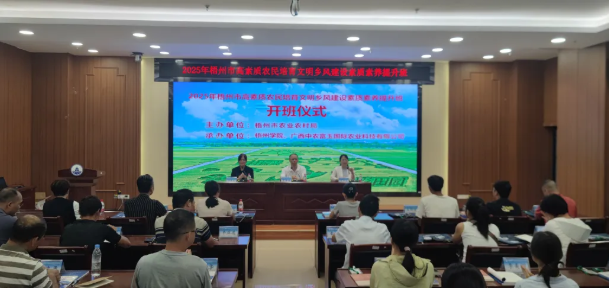 10 月 13 日,在梧州学院正式举办 “2025 年梧州市高素质农民文明乡风建设素养提升班”,来自全市各县(市、区)的高素质农民代表参加培训。本次培训围绕 “提升农民文明素养、强化乡村治理能力” 两大主题展开,课程涵盖政策理论解读、移风易俗实践、乡村治理创新、生态环保理念、农民权益维护、农业科技应用等内容。培训通过专家授课、案例分析、经验交流、实地考察等多种形式,全面提升学员综合素质,助力打造 “有文化、懂技术、善经营、讲文明” 的新时代农民队伍。