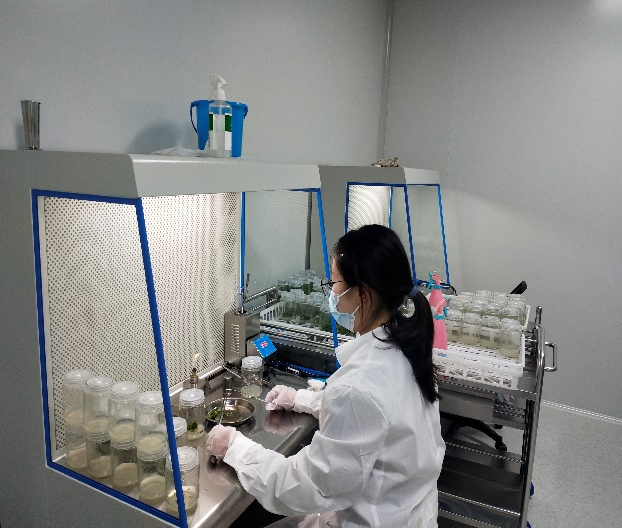 北京脱毒组培研发中心占地1200㎡,分为组培室(300㎡)、驯化移栽区(300㎡)、原原种栽培示范区(400㎡),其中组培培养室3间,面积共计160㎡,具备年产脱毒原原种苗30万株、栽培苗1000万株的能力。