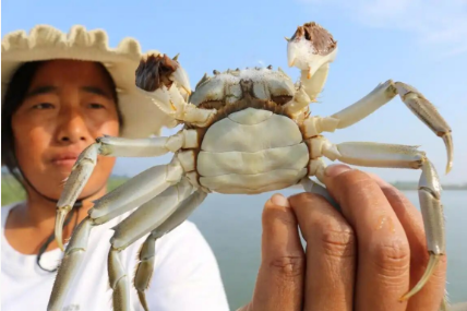 图源:新华社 刚刚捕捞上来的黄河口大闸蟹母蟹,肚白背青,十分干净。